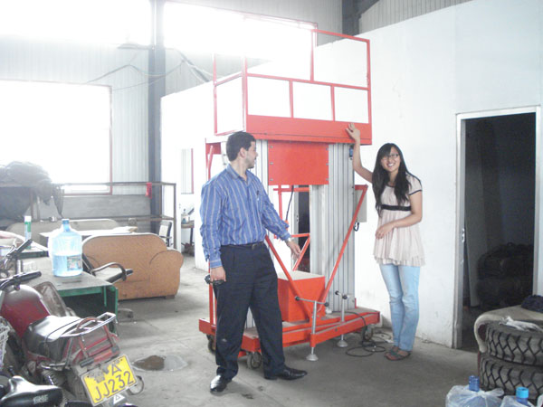 印度客戶來我公司選購鋁合金升降機http://www.yi027.cn/